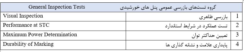 - بازرسی ظاهری براساس استاندارد IEC 61730