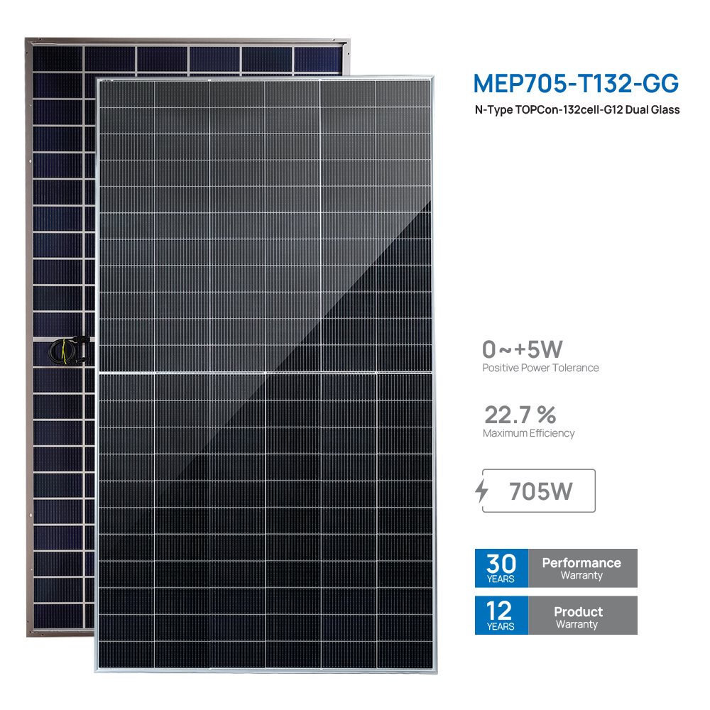 پنل خورشیدی ۷۰۵ وات دوطرفه مونوکریستال N-Type مانا انرژی (MEP705-T132-GG)